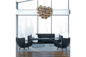 Obývací pokoje často ztrácí kvůli rozmanitosti aktivit určité ohnisko, kam by se soustředily pohledy přítomných, jakési centrum místnosti. Abyste tuto potíž vyřešili, doporučujeme zvolit jako ambientní osvětlení závěsný lustr, čímž místnost vybalancujete.