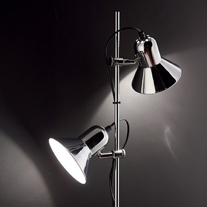 Polohovatelná svítidla stolní lampy lépe nasvítí požadovaný prostor. Kovová lampa v chromovém provedení a stříbrnými stínítky nebo barevně smaltované. Doporučujeme přikoupit úsporné žárovky.