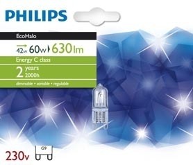 Kapsolé zářivky Philips Halogen poskytují ostré, jiskřivé světlo a nechají na vašem svítidle vyniknout o nejlepší. Taky je stmívatelná.42 W (60 W)Patice G9Teplá bílá…