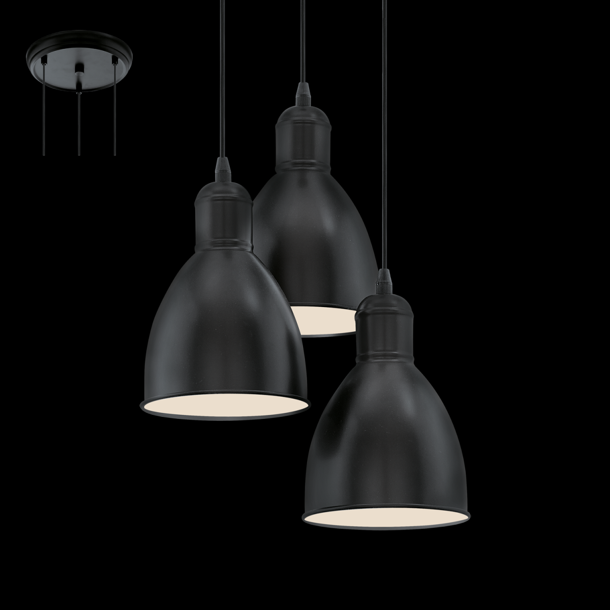 Eglo 49465 závěsné svítidlo Priddy 3x60W | E27 - černá, bílá
