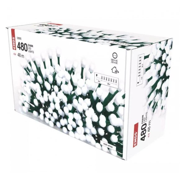 Emos D5AC05 vánoční řetěz Cherry - kuličky 8m 9W | 480LED | IP44 - časovač, studená bílá, zelená