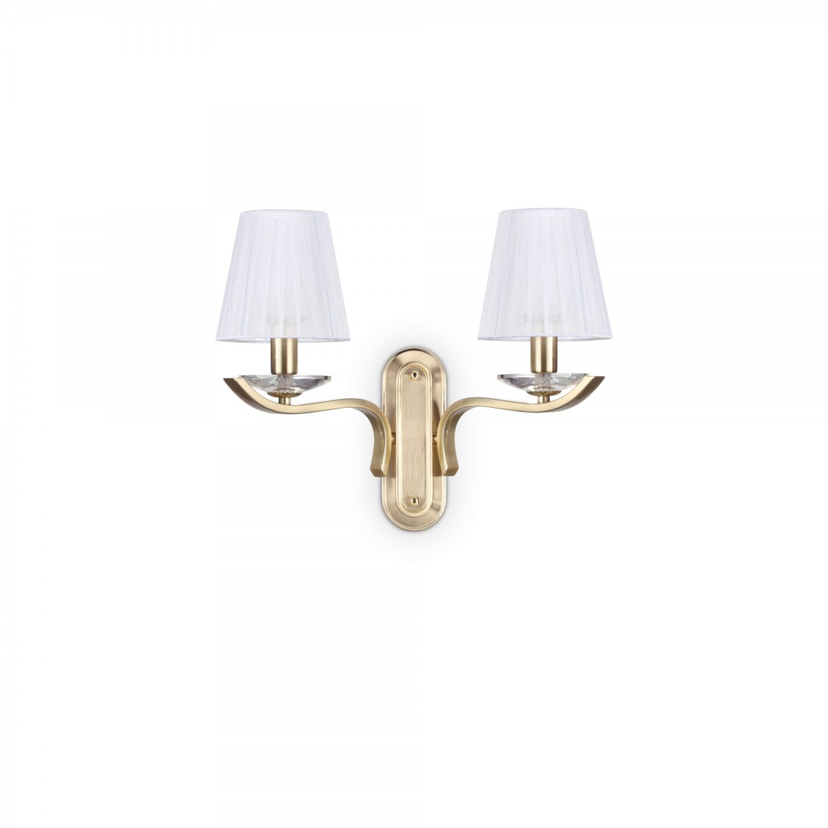 Konstrukce svítidla je vyrobená z kovu v decentním zlatém provedení. Dvě ramena, na kterých jsou umístěné objímky pro žárovky, jsou statická. Na jemnosti nástěnnému světlu přidávají drobná stínítka z transparentní organzy.