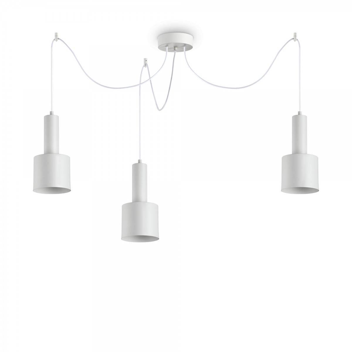 Závěsné stropní svítidlo Ideal Lux 231587 Holly jistě potěší každého, kdo má rád moderní a neobvyklé tvary. Tento lustr se výborně hodí do moderních interiérů, kde vynikne zejména v obývacím pokoji, nad kuchyňským stolem nebo v kuchyni. Difuzory svítidla, stejně jako jeho základna, jsou kovová v bílé barvě.
