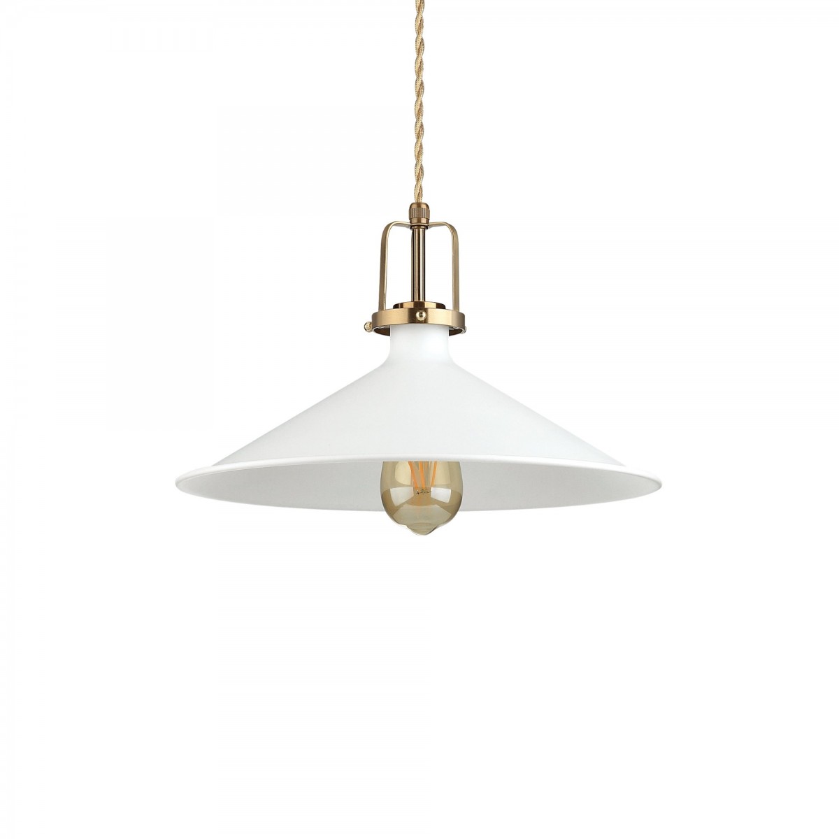 Retro závěsný lustr Eris 238210 od italské společnosti Ideal Lux učaruje na první pohled všem, kteří milují jednoduchý styl klasických závěsných svítidel. Lust v jemné bílé barvě je doplněný o matně zlatou centrální růžici. Přívodní kabel je potažený látkou a vhodně tak doplňuje vintage vzhled závěsného svítidla.