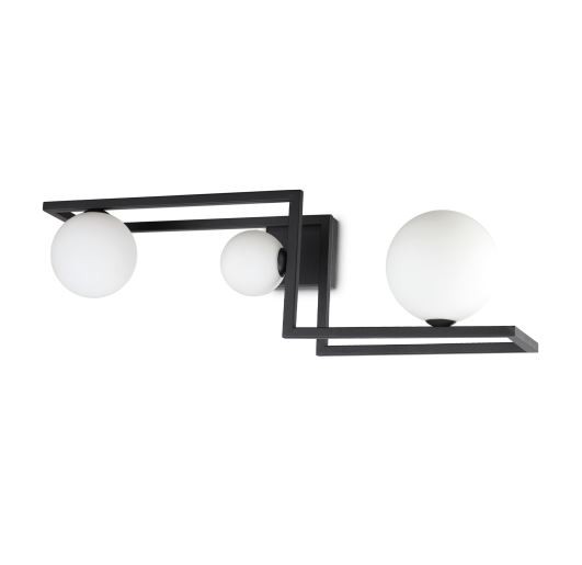 Speciální hranatý design svítidla v černém provedení obsahuje kulovité bílé skleněné difuzory, uspořádané tak, aby vyzařovaly 360stupňové světlo po celé okolní ploše. Uvnitř kulových skleněných difuzorů je patice pro žárovky G9 a součástí balení jsou tři 3W teplé světlo 3000K LED žárovky. Tyto žárovky můžete snadno vyměnit za jiné vhodnější pro váš osobní vkus a potřeby výběrem barvy světla a také požadovaného výkonu.