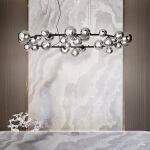 Lustr Perlage, navzdory svým impozantním rozměrům, je navržen pro snadnou údržbu a představuje mimořádnou volbu pro velké, sofistikované prostory. Na lustr se vztahuje