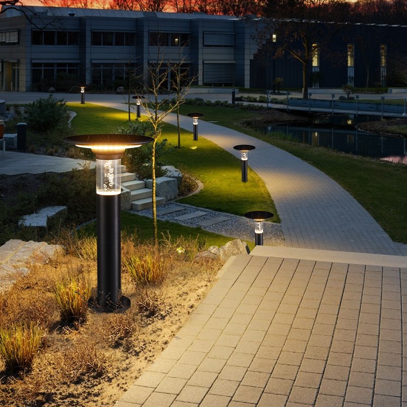 Zahradní sloupek NEO LITE BUBBLES Smart spojuje elegantní design s pokročilou technologií. Díky solárnímu panelu a výkonné baterii nabízí