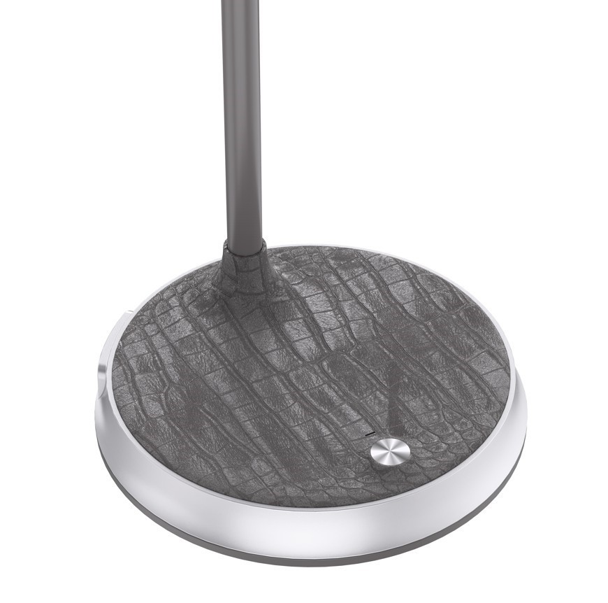 Stolní lampa FINCH v provedení imitace šedé kůže s stříbrnými prvky dodává prostoru elegantní a moderní vzhled. V základně lampy je zabudováno bezdrátové Qi nabíjení , které umožňuje nabíjení…