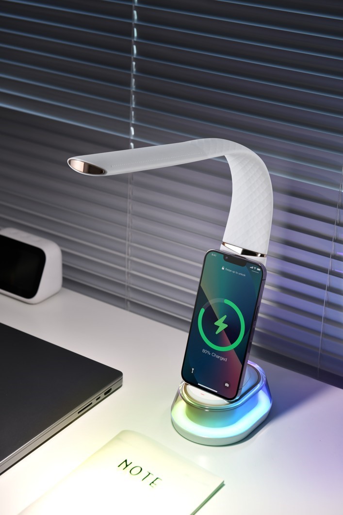 Naprosto skvělá lampa. Krásný design, spodní část barevně podsvícená - lze si nastavit podle chuti a nálady a nebo vypnout úplně, možnost dobíjení mobilu, a to jak bezkontaktně, tak pomocí kabelu. Zároveň oceňuji, že mohu využít jen jako stojan na mobil při práci u PC - pouze otočím hlavu k mobilu a vidím upozornění. Tři druhy světla a u každého možnost zvolit 3 stupně intenzity (využívám podle denní doby a osvětlení v místnosti).