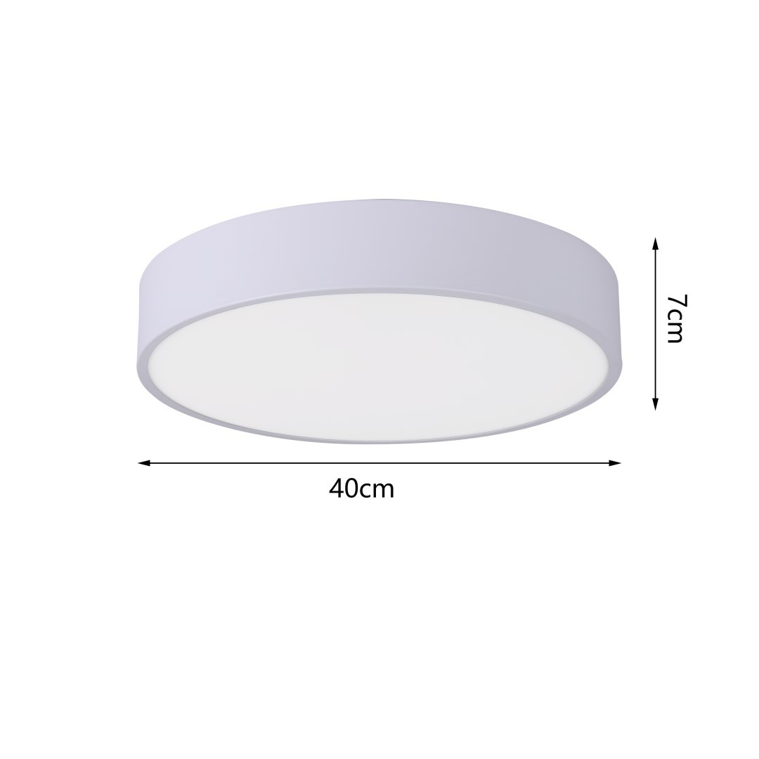 Svítidlo v bílem provedení s působivým průměrem 40 cm se stává výrazným designovým prvkem a poskytuje dokonalé osvětlení pro větší prostory.