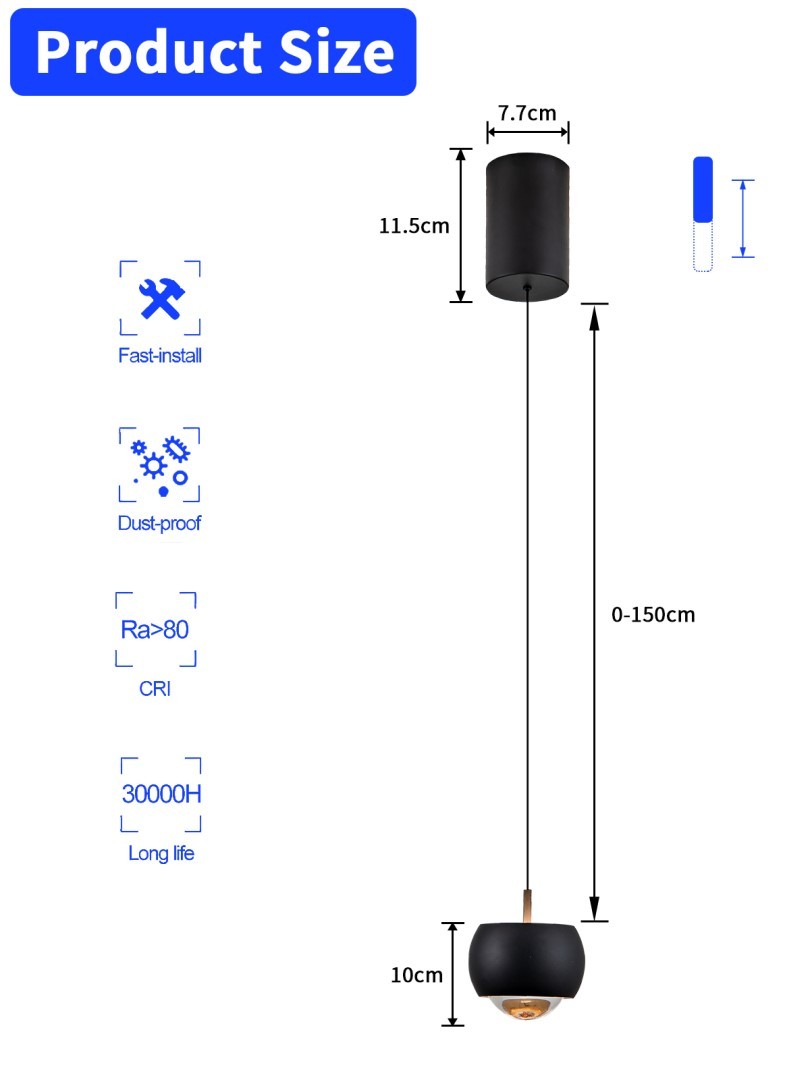 Délka závěsného lanka lze jednoduše měnit potažením nebo vytažením svítidla v rozsahu od 0 do 150 cm