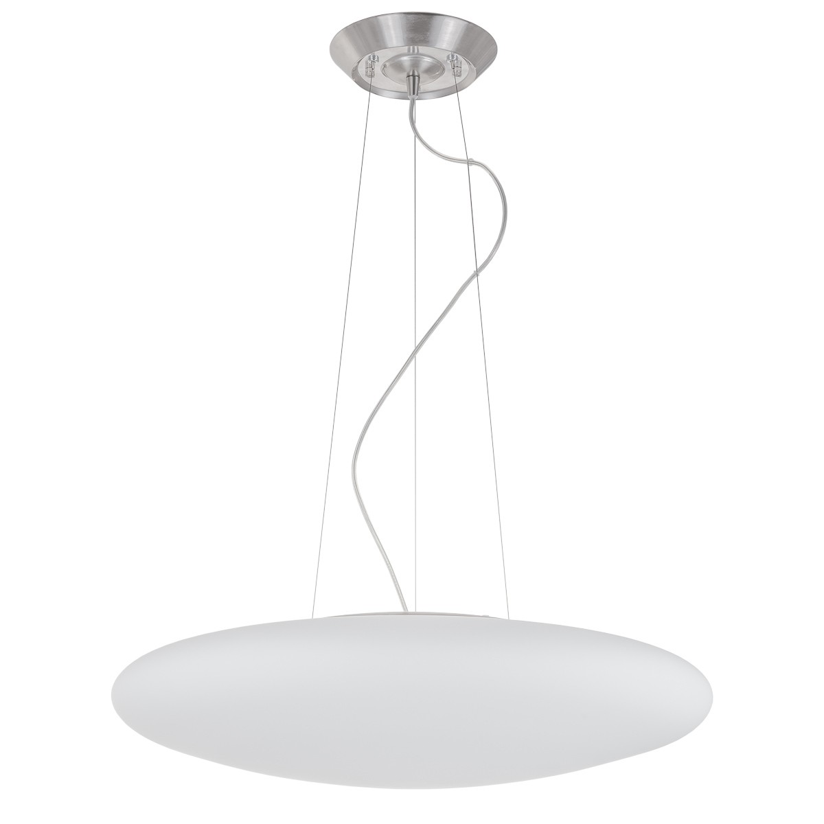 Lampa z mléčného skla příjemně rozprostře světlo ze tří žárovek do měkkého osvětlení celé místnosti. Ať lustr použijete do obývacího pokoje, či nad jídelní stůl, stane se elegantní součástí vašeho domova. Průměr lampy je 600 mm. V naší nabídce naleznete čtyři různá svítidla stejné řady.