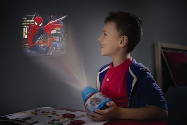 Toto noční světlo a projektor obrázků Philips a Marvel Spiderman okouzlí vaše dítě kouzelným příběhem. Otáčením 1 z filmových koleček promítejte na strop barevné a zábavné scény z filmu o…