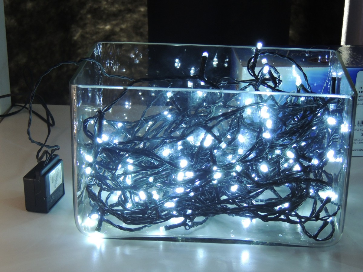 Celý článek- světelný řetěz k venkovnímu použití, stupeň ochrany IP44- 180x LED 5,4W- napájení 24V- světlo studené bílé- 8 funkcí- délka 17,9 m, kabel zelený- délka přívodního kabelu 10 m