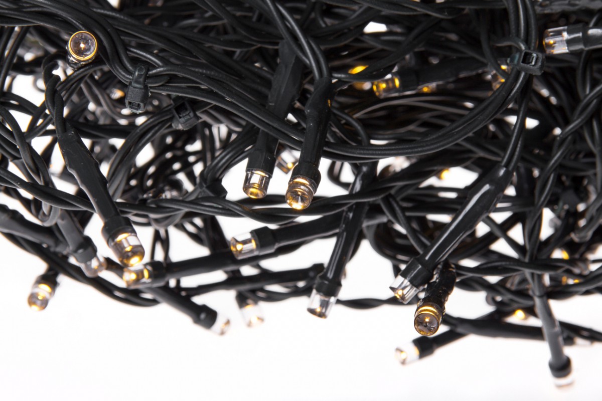 Celý článek- světelný řetěz k venkovnímu použití, stupeň ochrany IP44- 600x LED 14,4W- napájení 24V- světlo teplé bílé- délka 30m, kabel černý- délka přívodního kabelu 10 m