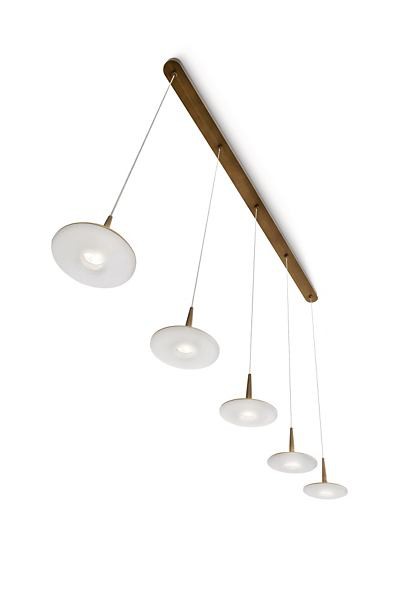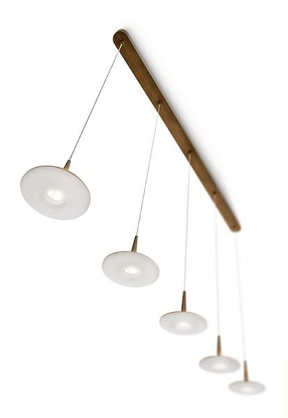 Tato štíhlá visící svítidla s futuristickým plochým tvarem, elegantně visící na tenkém lanku, jsou vskutku jedinečná a nepřehlédnutelná. Každá velká kopule z matného skla vyzařuje silné teplé bílé…