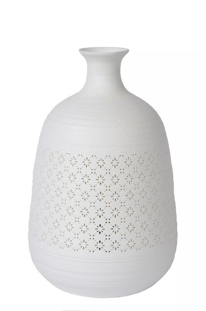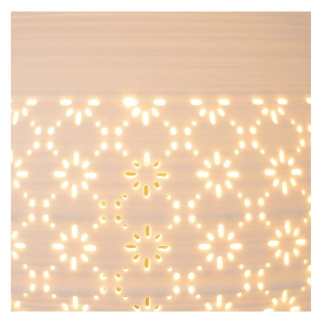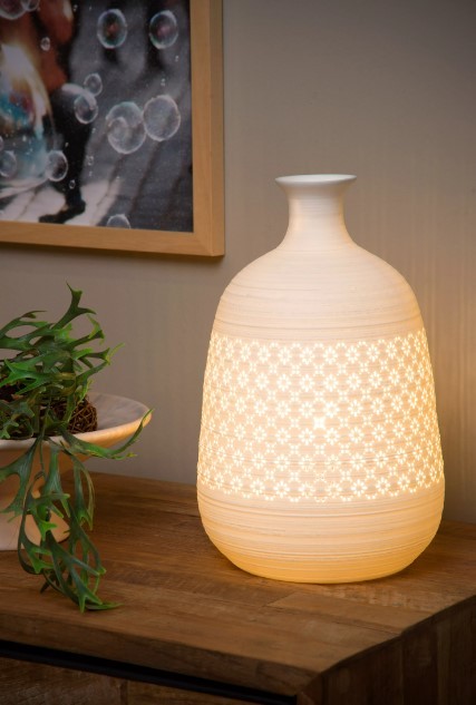 Stolní lampa Tiesse od belgické značky Lucide Vás zkrátka zahřeje na srdci. Konstrukce je vyrobena z kvalitního porcelánu, který je doplněn o motiv jenž tvoří pravidelně proděravěný vzor.