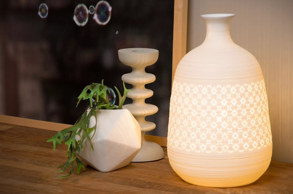 Díky volbě porcelánu je lampa ve svém rozvíceném stavu lehce průsvitná a vytváří svým jemným osvětelním útulnou atmosféru.