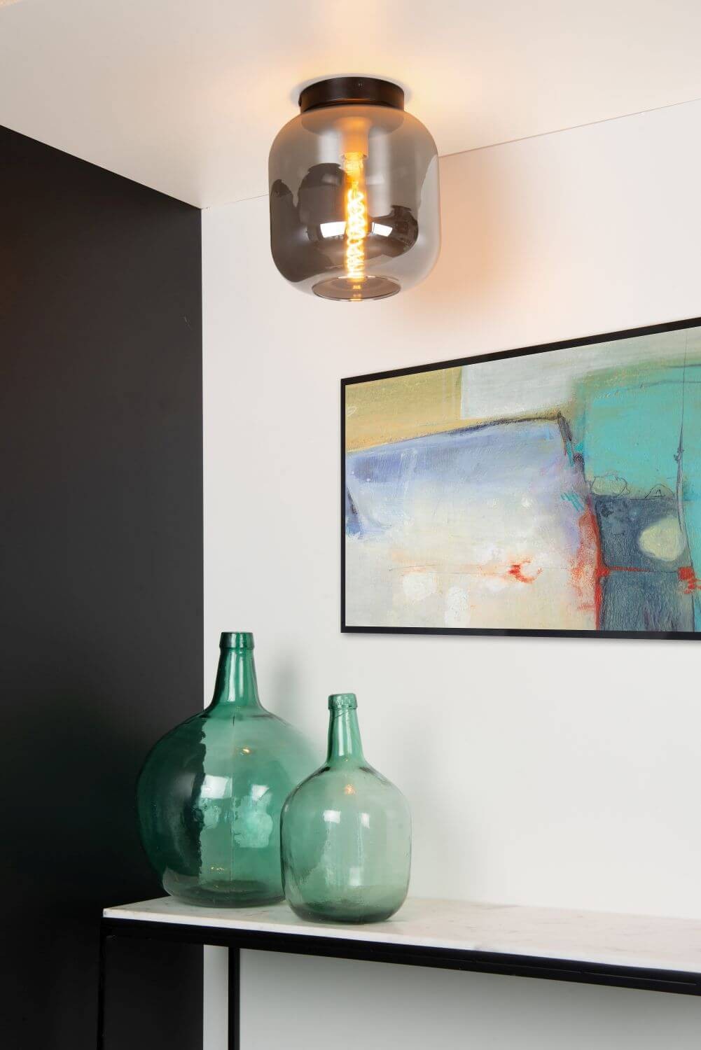 Toto elegantní stropní svítidlo s průměrem 25 centimetrů a výškou 28,5 centimetrů je vybaveno skleněnou kopulí z kouřového skla, která je prolamovaná ve spodní části, což umožňuje optimální využití světla a dodává prostoru sofistikovaný vzhled. Svítidlo lze připojit k externímu stmívači a přizpůsobit intenzitu světla podle potřeby, abyste vytvořili atmosféru přesně podle vašeho přání.