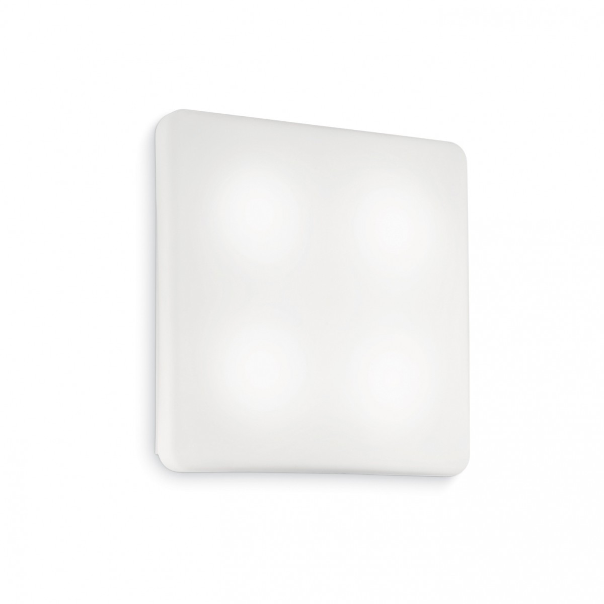 Doplňkové osvětlení. Pevný kovový rám v matné bílé úpravě a foukané stínítko z matně bílého skla.