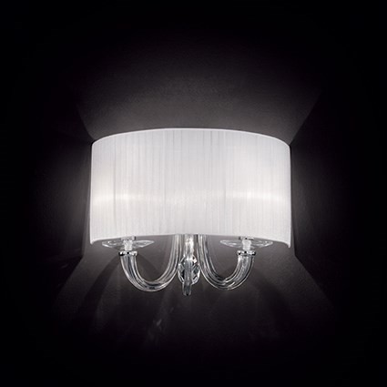 Celý článekElegantní svítidlo z krásně zpracovaného skla. Tělo je z foukaného skla a držáky zdroje z ručně tvarovaného skla, s dekorativními křišťálovými prvky. Stínítko ze skládané látky je svěžím bodem…
