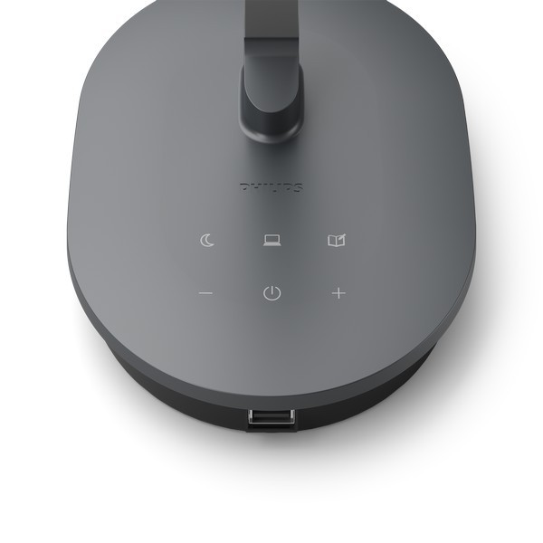 Philips 8719514443655 LED stolní dotykové svítidlo Sword 1x12W | 450lm | 2700-6500K - USB, stmívatelné, šedá