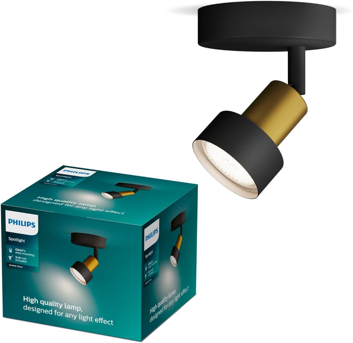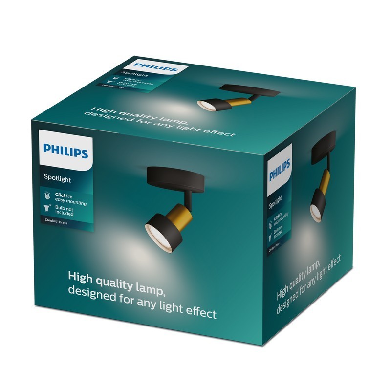 Praktická funkce ClickFix umožňuje rychlou a snadnou montáž jednoduchým zacvaknutím na držák. Svítidlo CONDUIT se prodává bez žárovek, což vám poskytuje volnost při výběru požadovaného světelného výkonu. Doporučujeme použít LED žárovky GU10 pro optimální účinnost a úsporu energie.