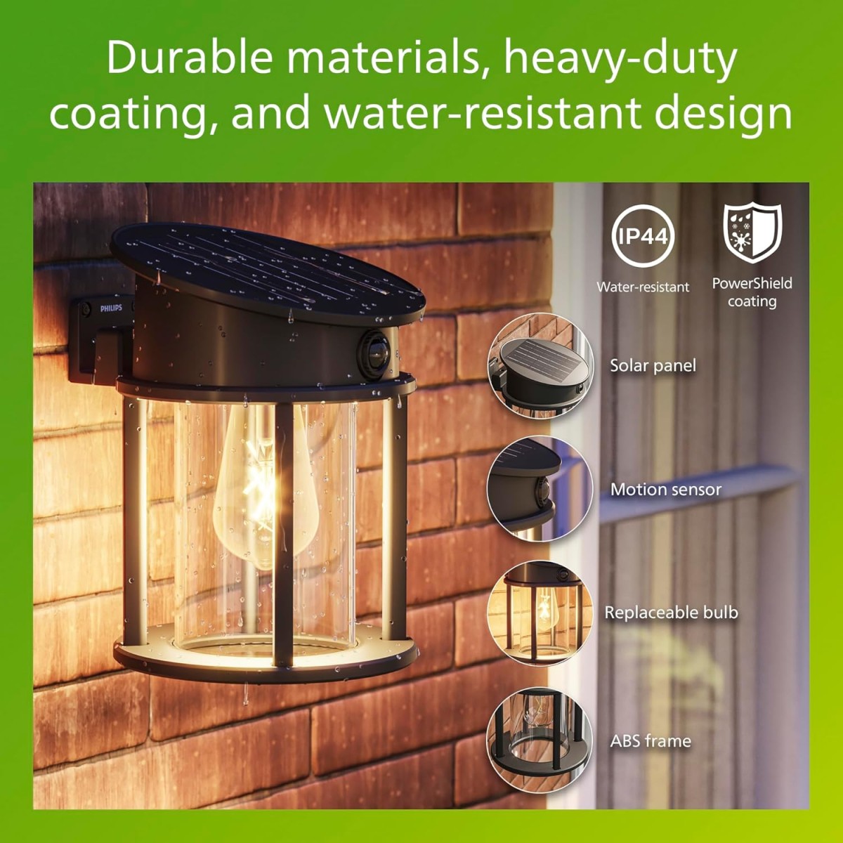 Philips 8720169361904 LED solární venkovní nástěnné svítidlo Geri | 3,2W integrovaný LED zdroj | 500lm | 2700K