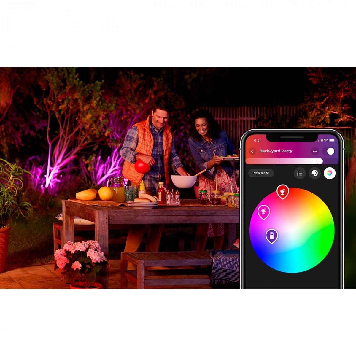 S venkovním osvětlení Philips Hue máte neomezené možnosti, jak přidat svému exteriéru kouzlo. Hrajte si se 16 miliony barev a všemi odstíny bílého světla a vytvořte efekt, který požadujete. Zvýrazněte objekty, stromy nebo cesty, nechte svůj prostor vyniknout. Aplikace Hue umožňuje uložit si oblíbená nastavení, která pak následně můžete kdykoli vyvolat pouhým klepnutím prstu.