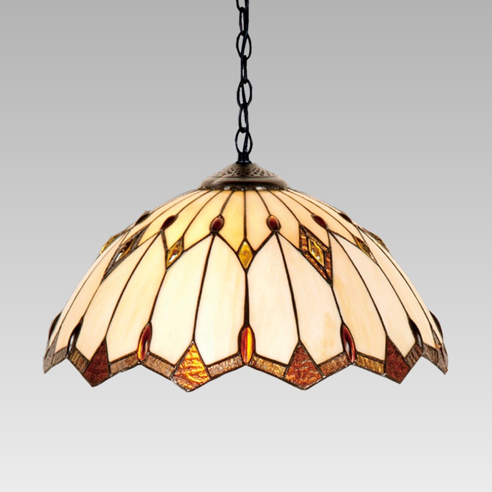 Krásný vitrážový lustr Tiffany zajímavě oživí interiér. Průměr je 400 mm. Do lustru se dává žárovka s paticí E27.