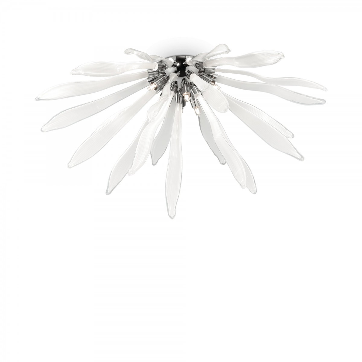 Neobyčejné a moderní svítidlo. Kovové tělo a detaily v lesklé chromové úpravě a ručně tvarované skleněné detaily v bílé opálové barvě dodá interieru mimořádný náboj.