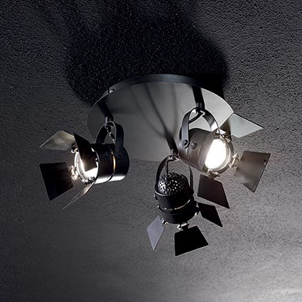 Kovový rám a difuzer v černé nebo bílé lakované úpravě. Difuzer je polohovatelný, s pohyblivými lopatkami pro orientaci světla.