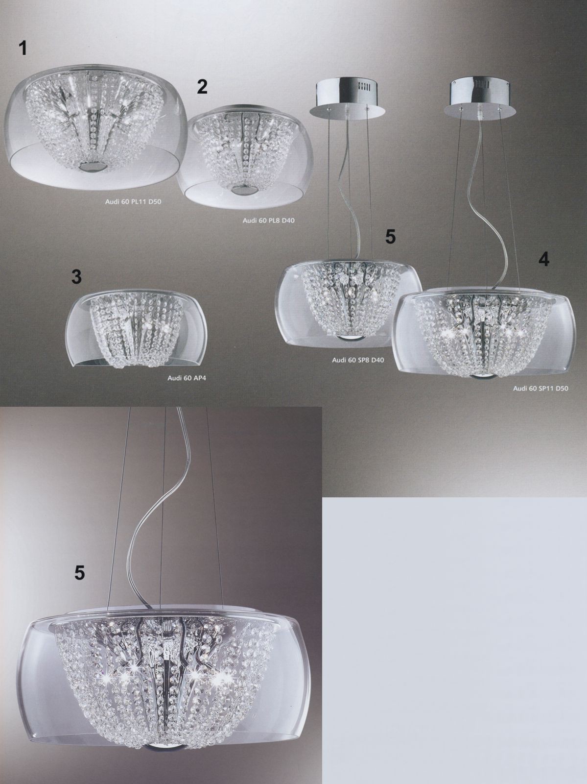 Velice elegentní a s nádechem luxusu, to je řada svítidel Audi. Lustr je tvořený stínítkem z foukaného čirého skla, které je zavěšené na třech kovových a nastavitelných lankách. Vnitřek stínítka…