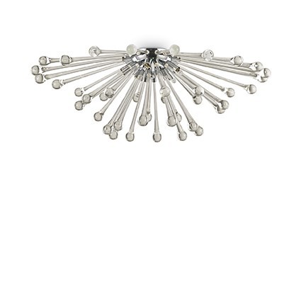 Luxusní řada svítidel do moderního interieru. Kovový rám s chromovou úpravou, do kterého jsou vsazeny zajímavé dekorativní prvky z foukaného, ručně tvarovaného skla. Chrom a čiré sklo nebo rám bíle…