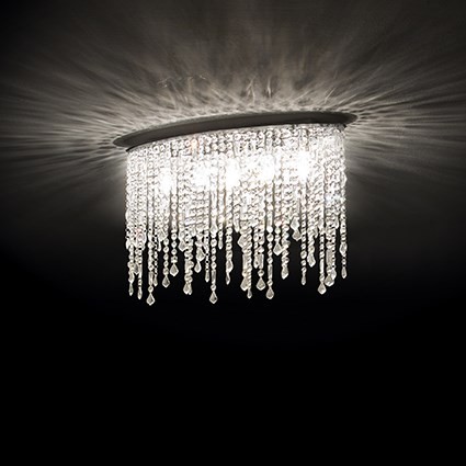 Luxusní nástěnné svítidlo z eliptického rámu v chromové úpravě. Čiré nebo s barevnými skleněnými prvkyk řišťálové ozdobné závěsy, řezané do různých tvarů a závěrečných kapek. Další v serii je lampa a…