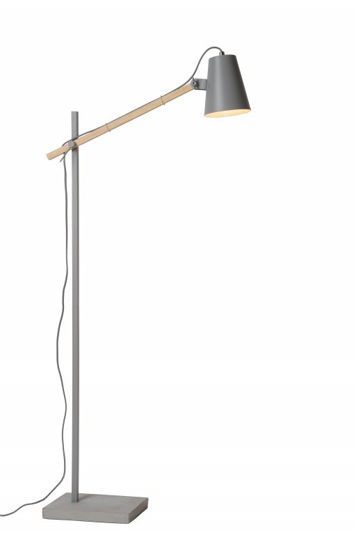 Moderní lampa v jednoduchém designu. Kovová základna s držákem dřevěného naklápěcího ramene a kovové stínítko. Jednoduché, ale elegantní.