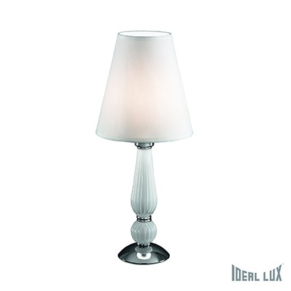 Základna centrální tělo této lampy je z odolného kovu s chromovou úpravou, s ozdobnými doplňky z ručně foukaného skla. Stínítko je vyrobeno z PVC folie, potažené látkou. Každého hosta ihned zajme…