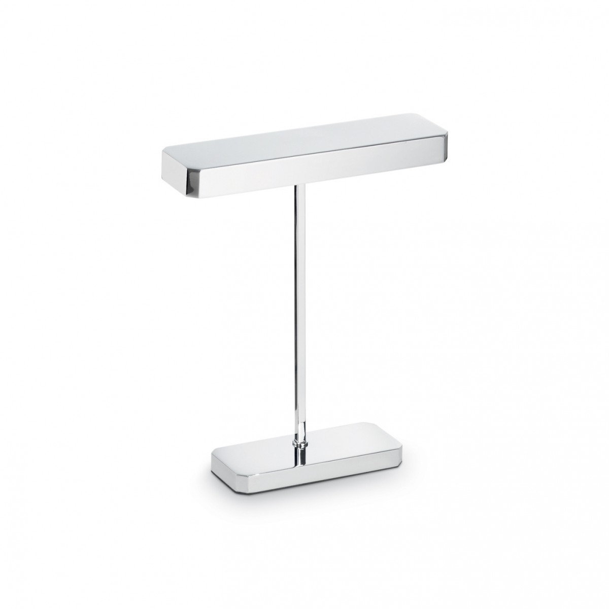Základna a stínítko jsou kovové v úpravě chromu nebo matnou bílou a černou barvou. Dva světelné zdroje zajišťují dostatek světla. Vhodný doplněk na pracovní stůl. Působí jednoduše, ale elegantně.
