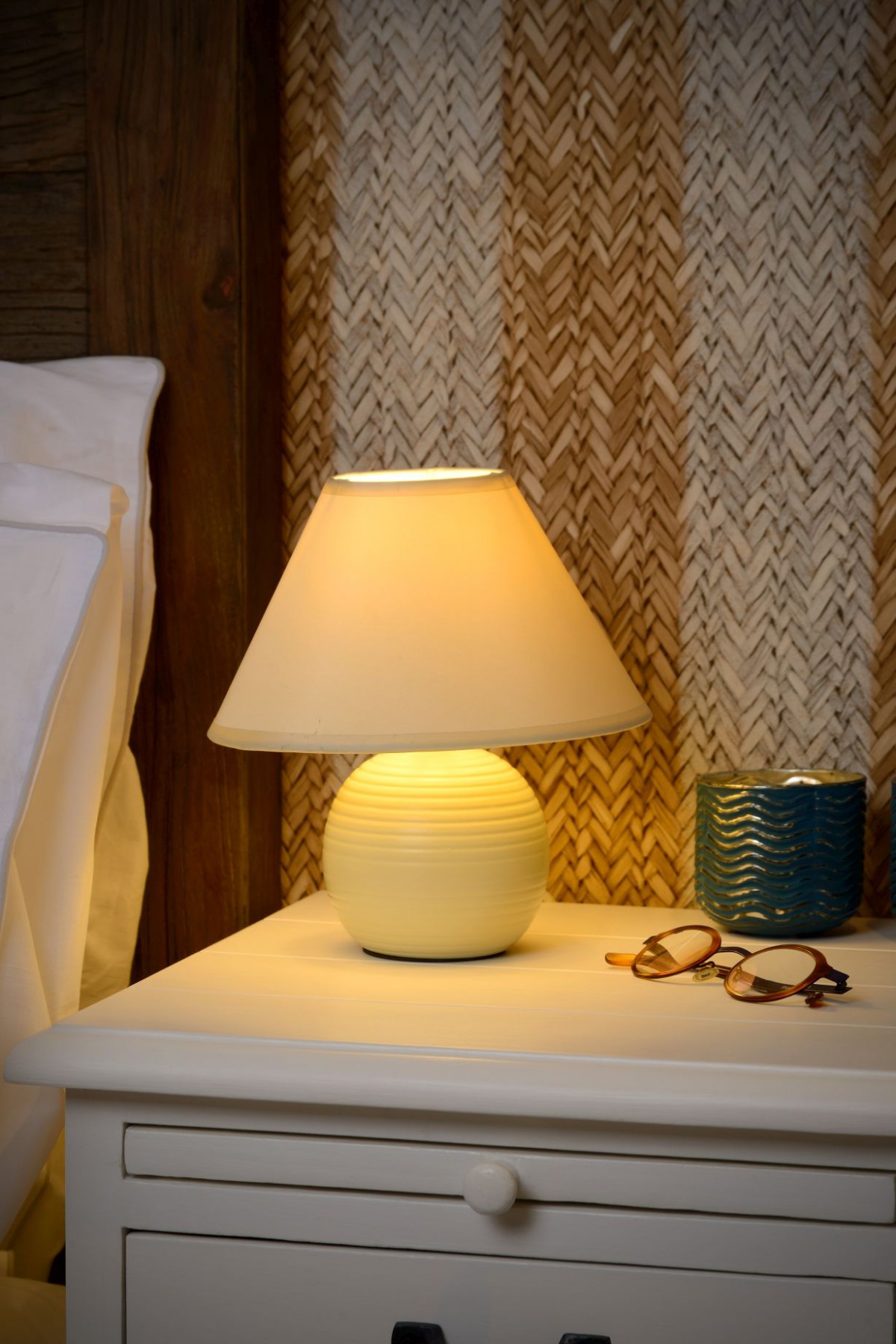 Keramická stolní lampa s příjemným světlem. Jednoduchý design a jednoduché barvy přináší inherentní intimitu a útulnost. Lampa je ideální jako noční světlo nebo třeba v ložnici.