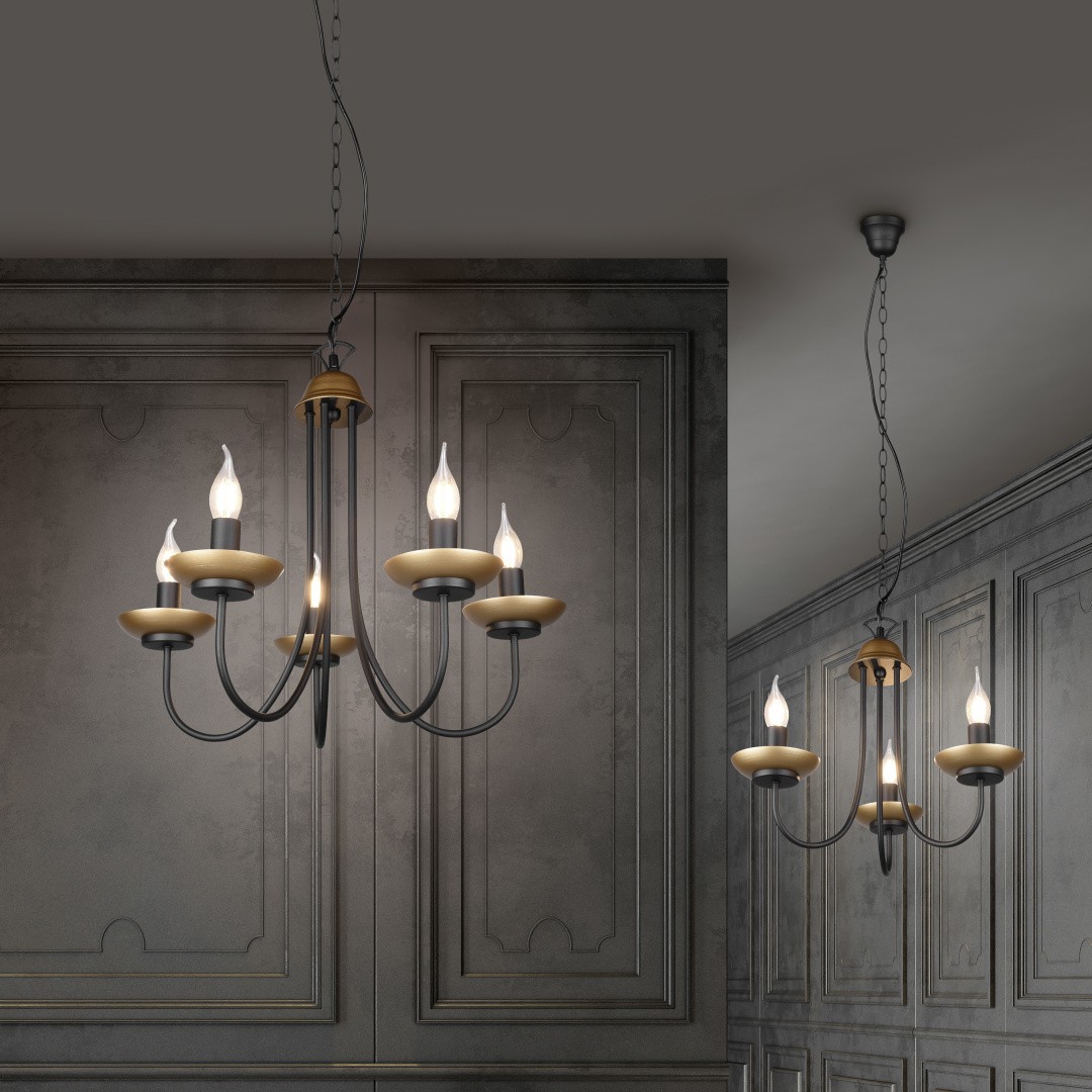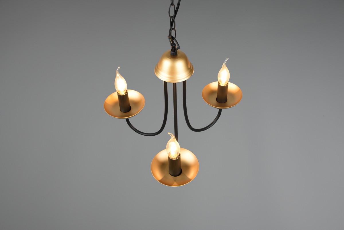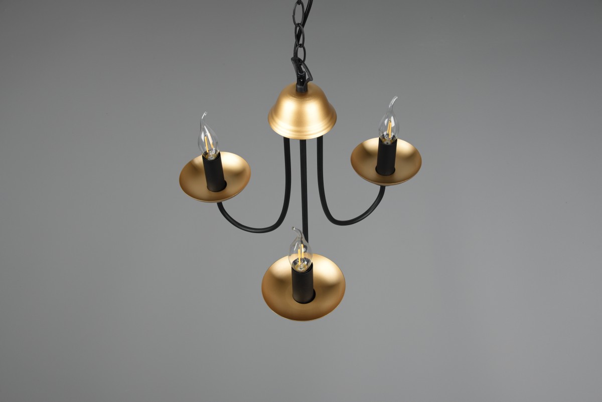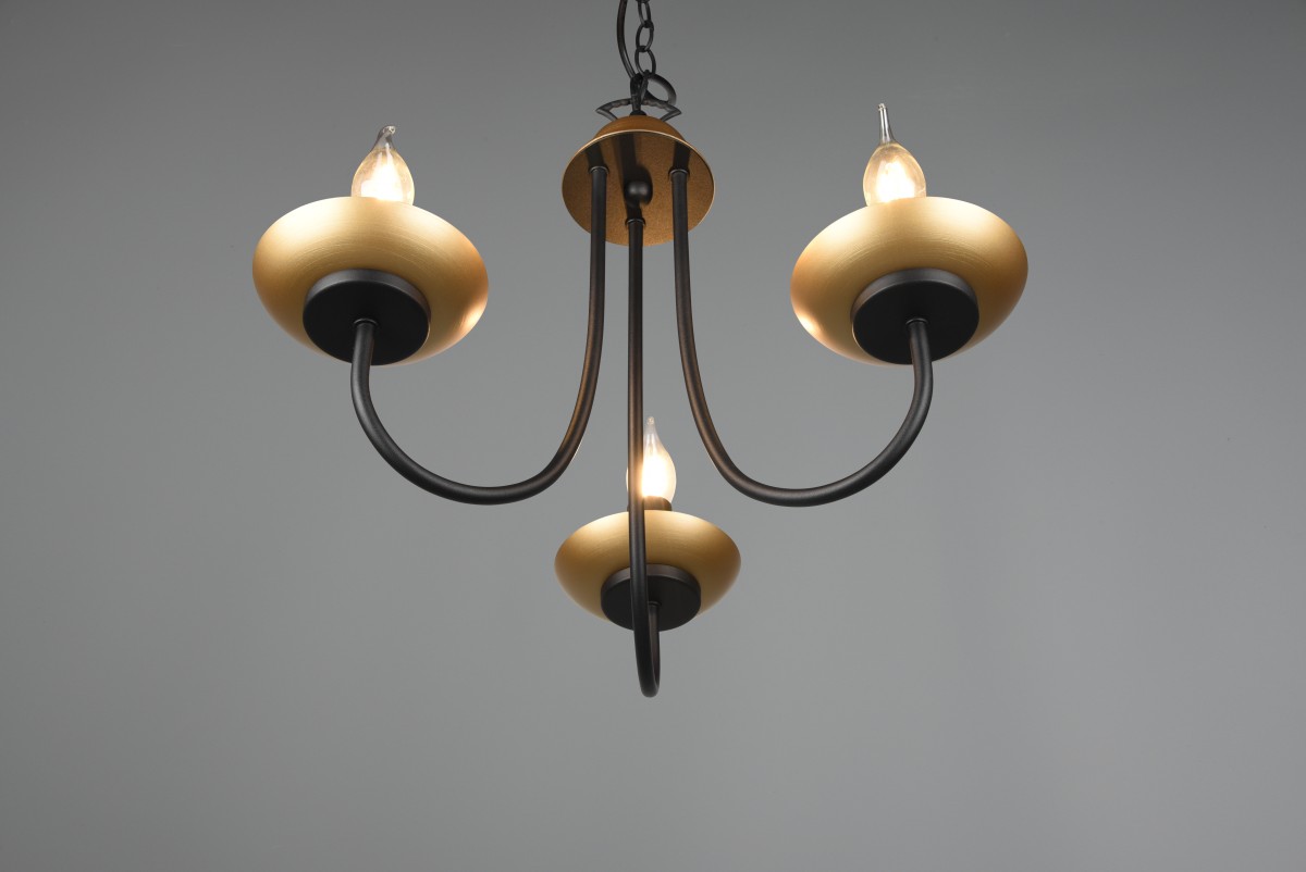 Svítidlo Livia Vám nabízí klasický design tvořený tří ramenou konstrukcí s povrchovou úpravou v matně černé a zlaté barvě. Lustr padne jako vyšitý do starožitně laděných interiérů.