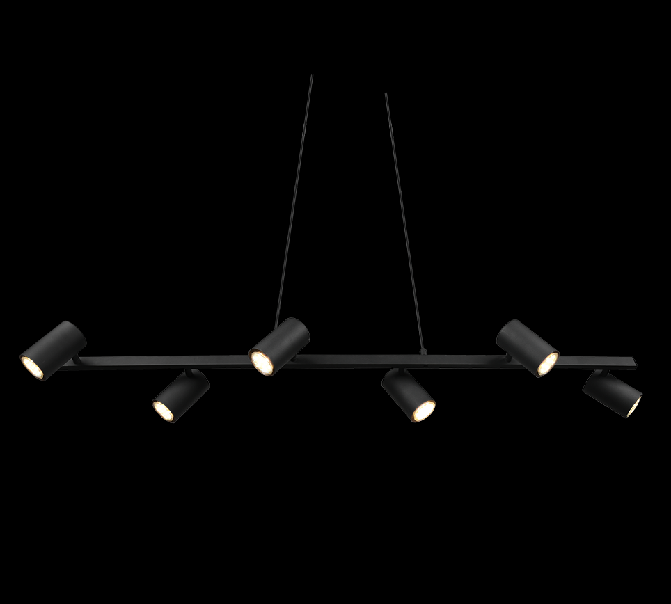 Zkuste si dopřát nevšední zážitek a potěšení z tohoto závěsného stropního svítidla MARLEY přímo ve vašem domě. Jedná se o šest bodových zdrojů světla, které jsou zasazeny na kovové konstrukci v černé barvě. Jako celek vytváří monumentální dojem, přičemž dominuje především svými rozměry, na výšku dosahuje 1500 mm a na šířku 1150 mm. Je ideální toto osvětlení tedy zasadit například nad jídelní stůl do prostorné místnosti s vyšším stropem. Pokud by však toto světlo příliš zasahovalo do prostoru, můžete si sami nastavit jinou výšku.