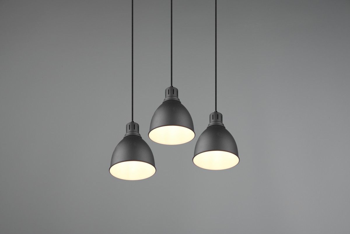 Soustava těchto tří moderně vyhlížejících lamp z řady HENLEY může zdobit i váš interiér. Jedná se závěsné stropní svítidlo, kterému dodává nadčasovost matně černá barva a kovový materiál.…