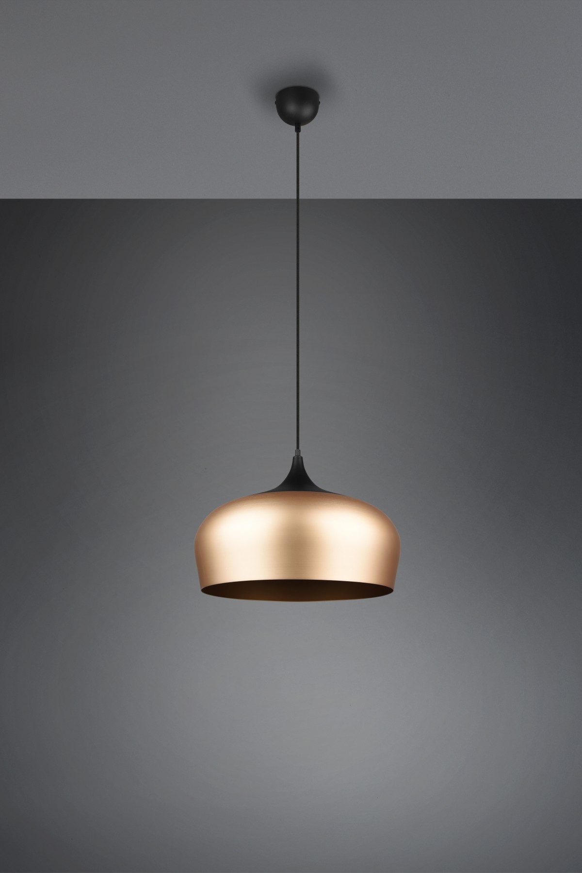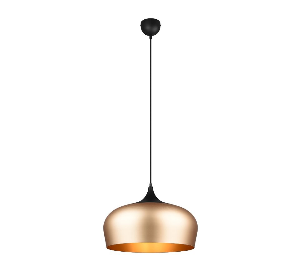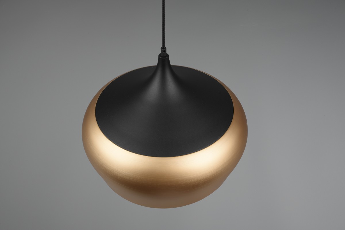 Moderně vyhlížející závěsné stropní svítidlo z řady CHIRON může být součástí i vašeho interiéru. Díky oblým křivkám bude snadno souznit se svým okolím. Mosazná barva stínidla s černým zakončením mu navíc dodává stylový vzhled.