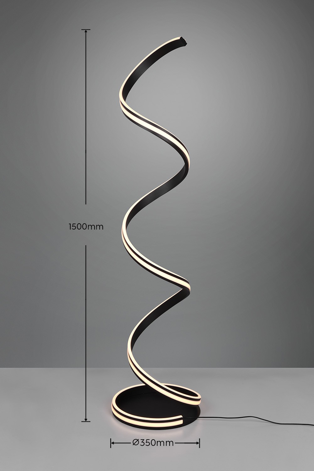 Z tohoto stojacího svítidla z řady Nuria/Yara se vám snadno může zamotat hlava úžasem. Jedná se o designové svítidlo, jehož kovová konstrukce v matně černé barvě vytváří rostoucí spirálu vyzařující světlo, které lze v několilka krocích stmívat. Na výšku měří 1500 mm, může tedy například z rohu pokoje vytvářet osvětlení pro celou místnost. Jeho snadné ovládání je zajištěno vypínačem na přívodním kabelu.