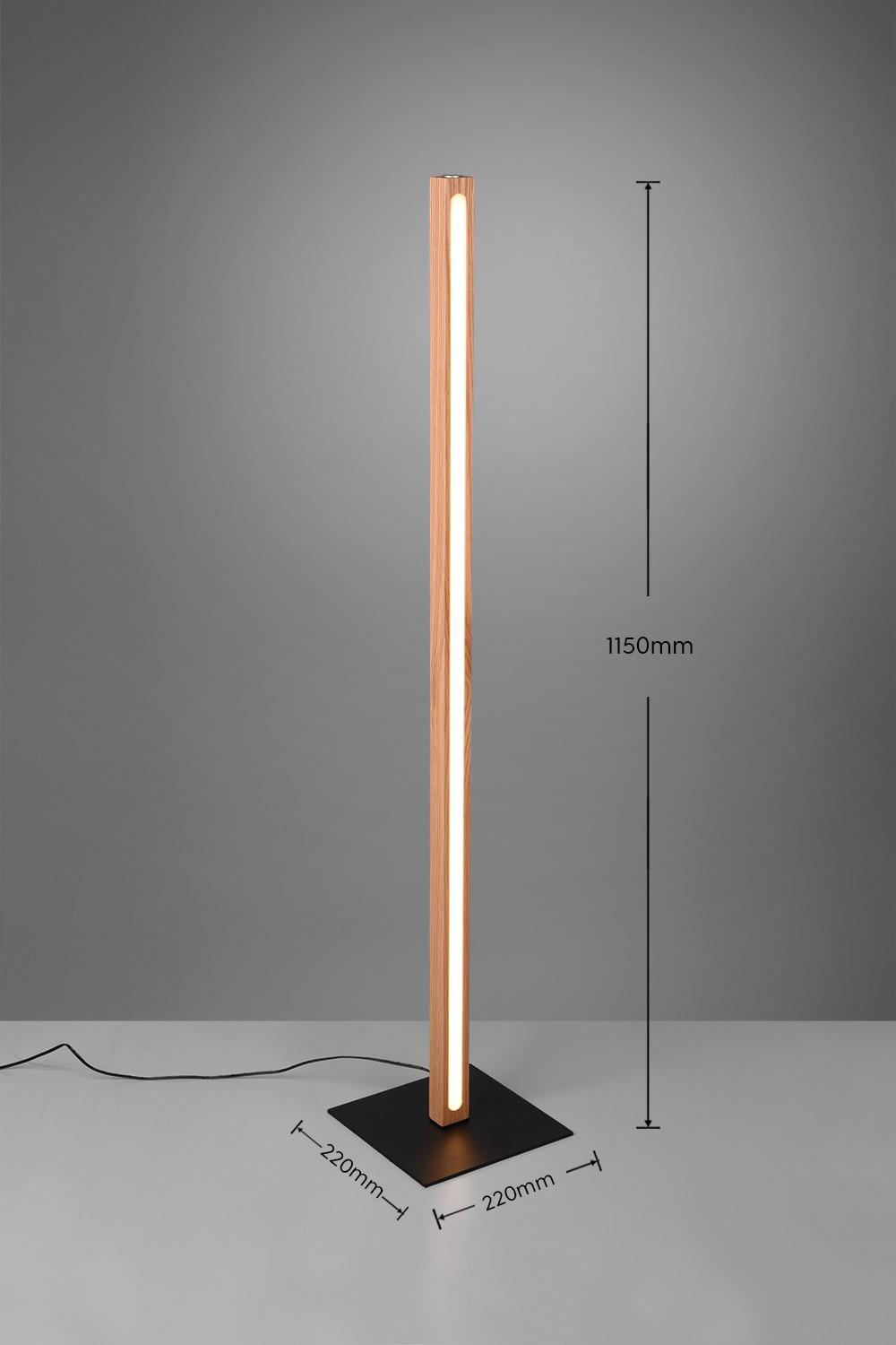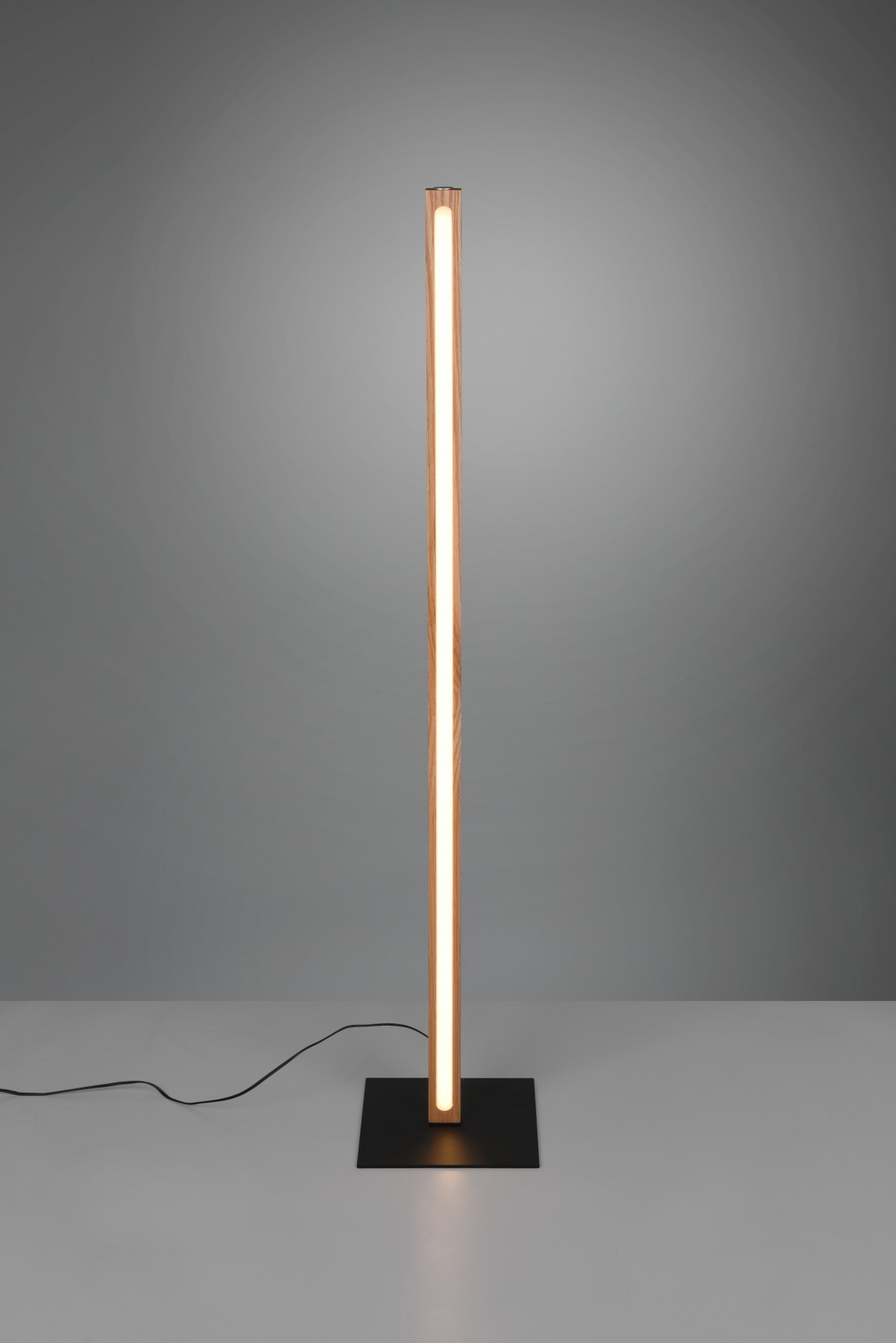 Dřevěné tělo je designově odlehčeno světelným pásem, který se táhne po celé délce lampy.