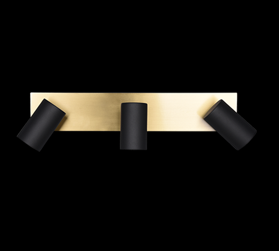 Zkuste si dopřát nevšední zážitek a potěšení z přisazeného svítidla MARLEY přímo ve vašem domě. Jedná se o tři bodové zdroje světla v černé barvě, které jsou zasazeny na kovové konstrukci ve zlatém odstínu. Jako celek vytváří minimalistický dojem a svými rozměry dosahuje 480 mm na šířku a 150 mm na výšku. Je ideální toto osvětlení tedy zasadit například do pracovny.