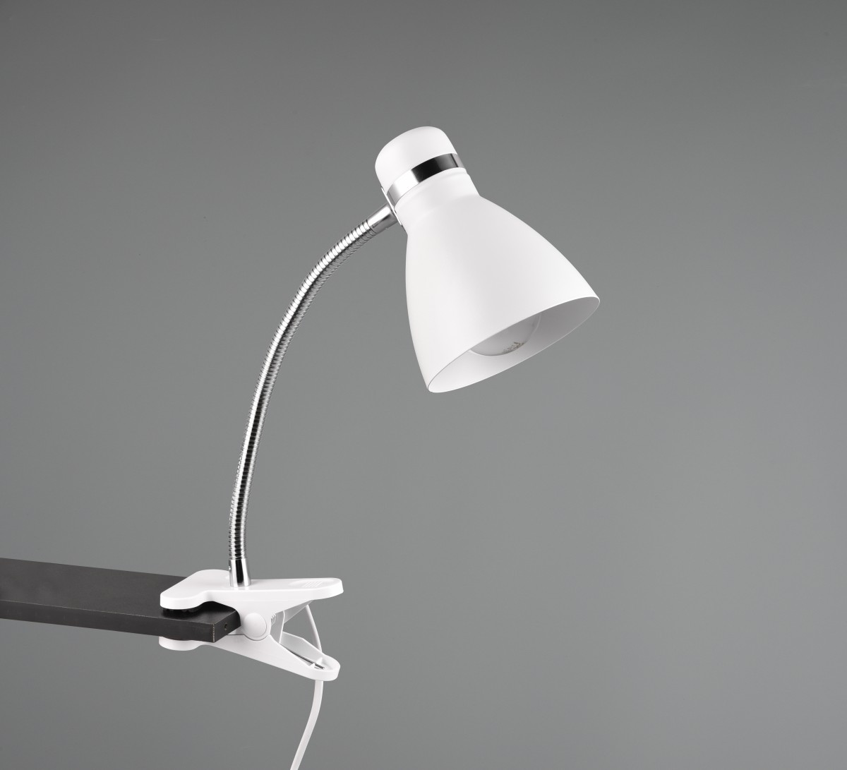 Trio R20731231 lampička s klipem Harvey - 1x10W | E27 | IP20 - kabelový spínač, ohebné rameno, kov, matně bílé