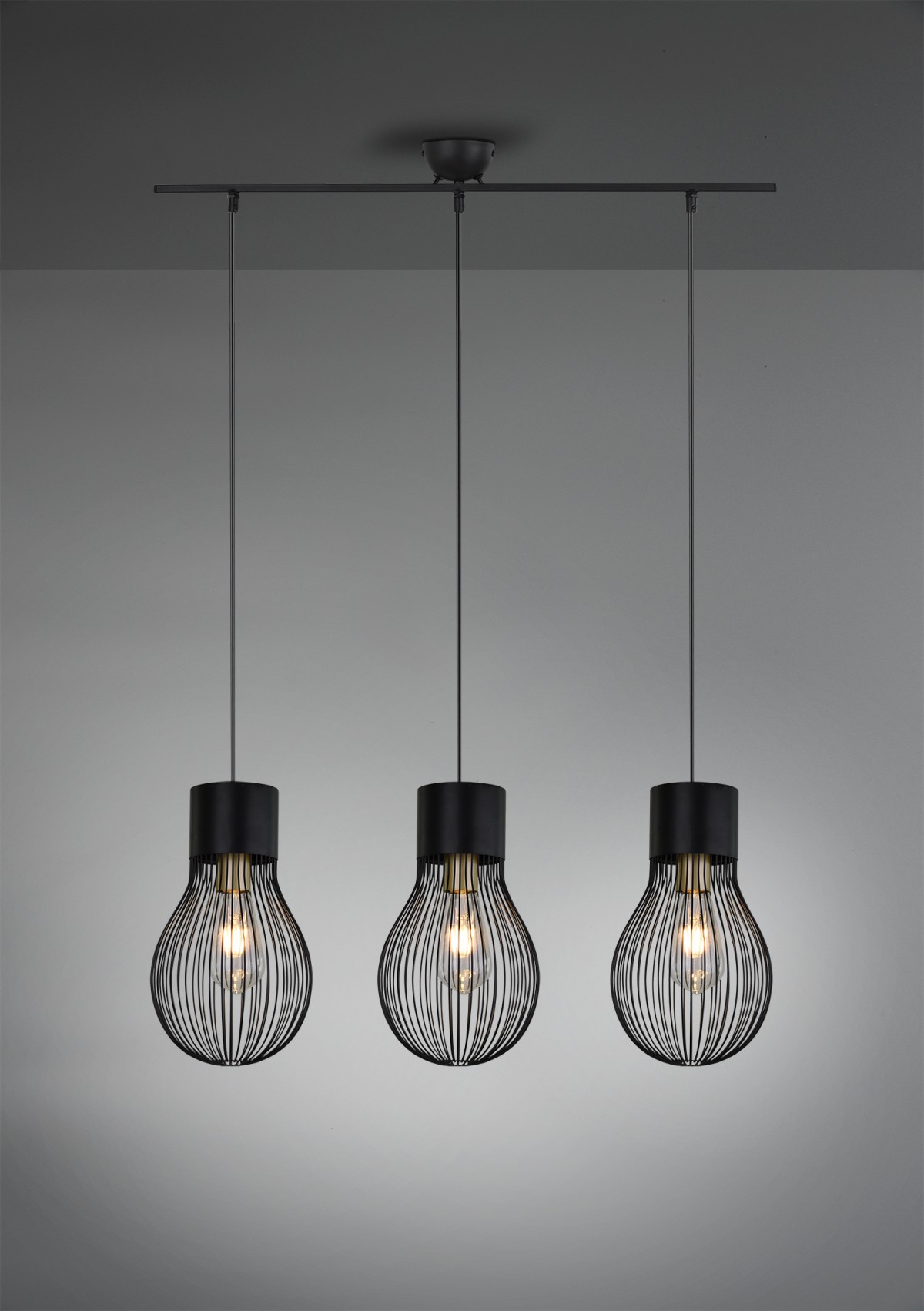 Závěsný lustr Trio TR30223032 se právem může pyšnit přívlastkem moderní. Lustr se skvěle hodí do obýváku a nebo do kuchyně. Díky stropnímu závěšení může být dominantním prvkem celého prostoru. Jeho hlavní část je vyrobena z kovu v matné černé barvě.