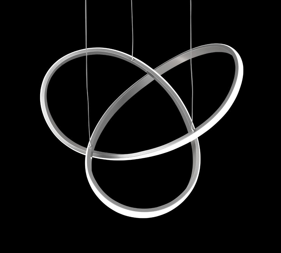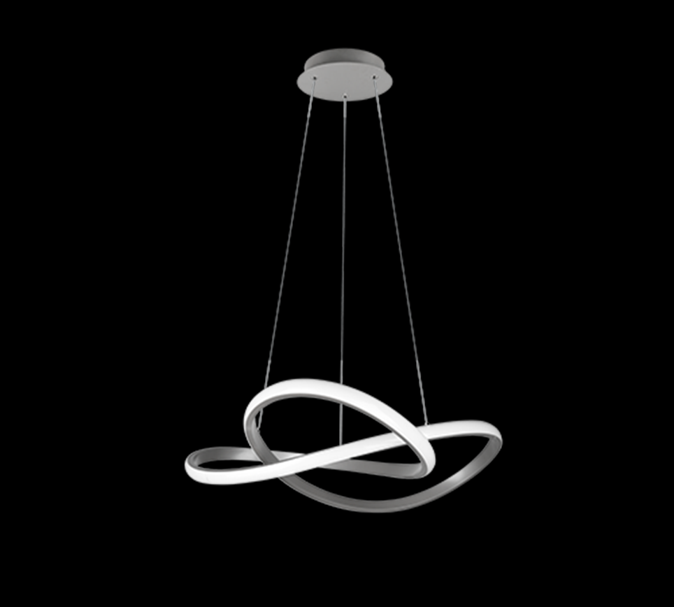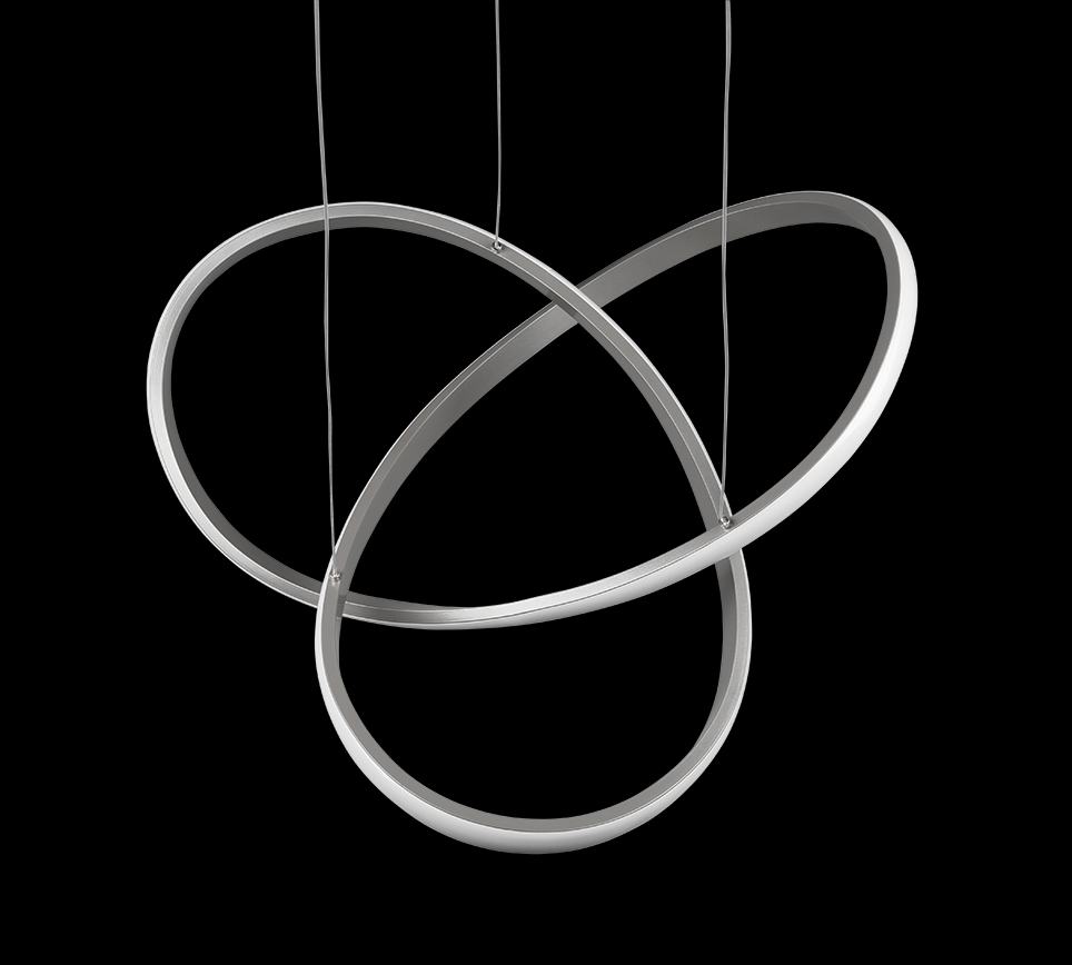 Z tohoto závěsného stropního svítidla COURSE se vám snadno může zamotat hlava úžasem. Jedná se o designové svítidlo, jehož kovová konstrukce v odstínu niklu vytváří spletité obrace vyzařující světlo, které lze v několika krocích stmívat. Můžete tak navodit atmosféru přesně podle svých představ. Na výšku měří 1500 mm a dosahuje průměru 600 mm. Toto osvětlení může zdobit například váš obývací pokoj, nebo jiné prostorné místnosti.
