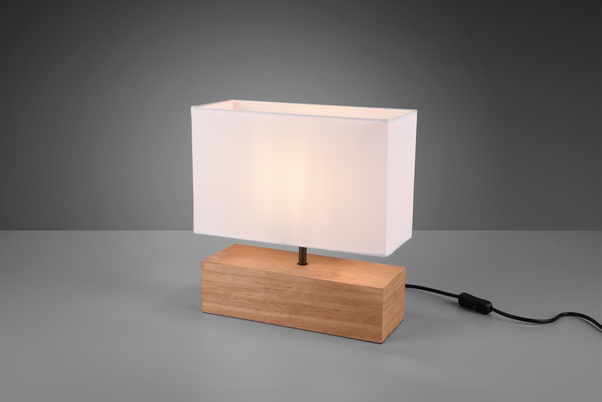 Stolní svítidlo Trio TR50181030 Woody potěší každého milovníka moderních a jednoduchých tvarů. Tato lampa bude díky své strohé eleganci výborně vynikat zejména v minimalistických nebo skandinávských interiérech. Stolní světlo se hodí jako doplňkové osvětlení do obývacího pokoje nebo do ložnice. Základna svítidla je vyrobena ze dřeva v přírodních barvách, stínidlo je pak z textilie v barvě bílé.